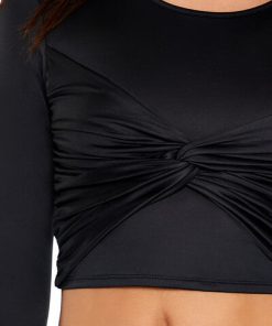 This must-have shapewear crop top flatters. lifts. and smooths without constricting! It features a round neckline. long sleeves. twisted front design. and a fitted silhouette. as well as a lightweight double-layered knit fabric that sculpts and contours the body for a flattering and smoothing fit with minimal seams and high functionality.