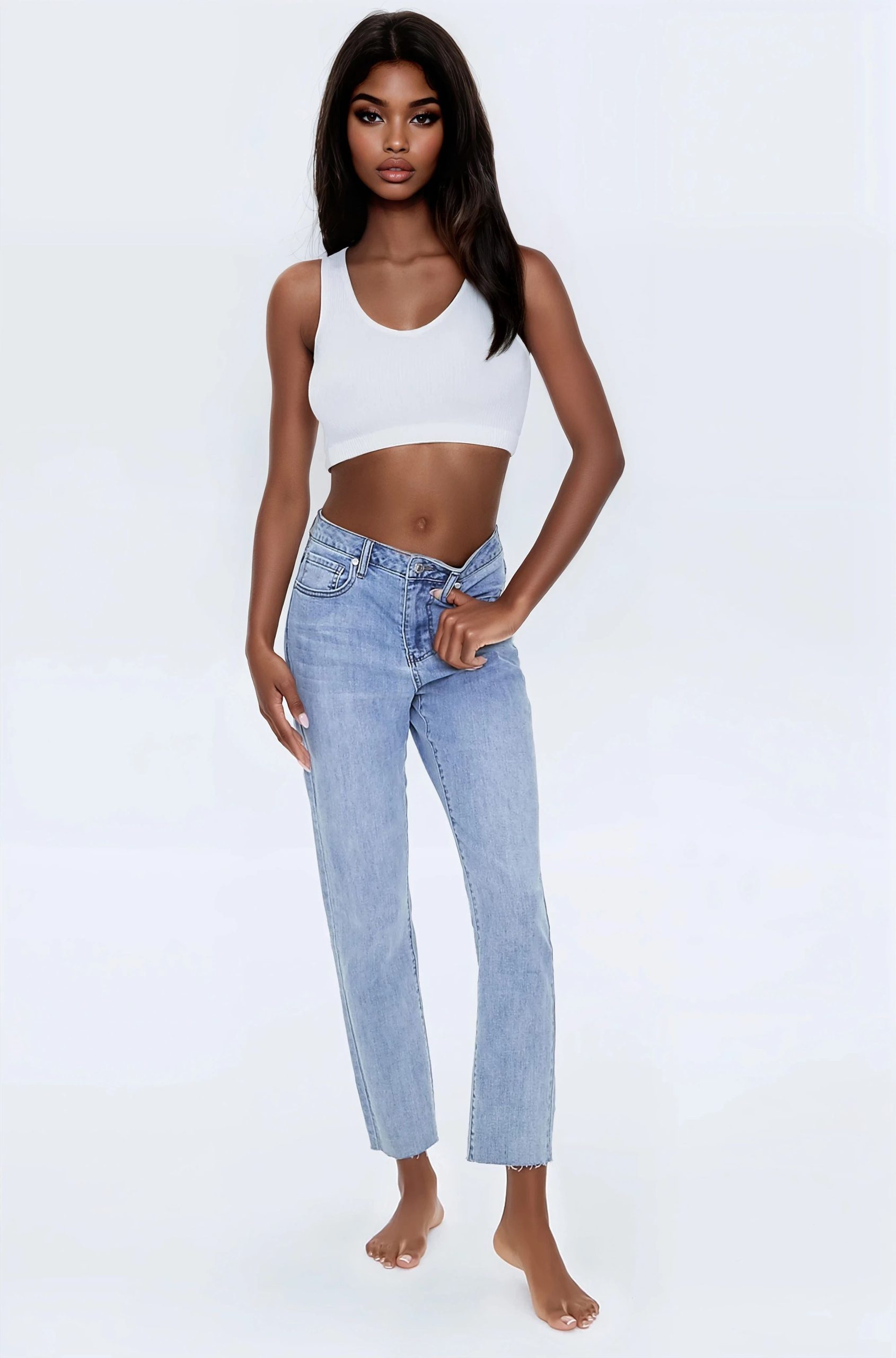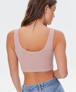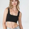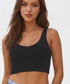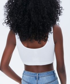 A seamless ribbed knit bralette featuring a scoop-cut neck and back. shoulder straps. and a longline hem.